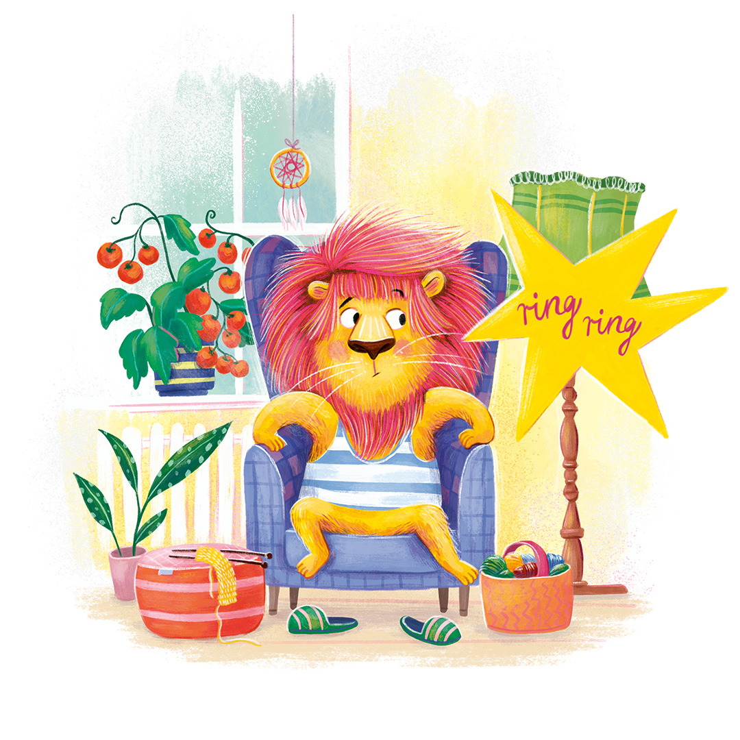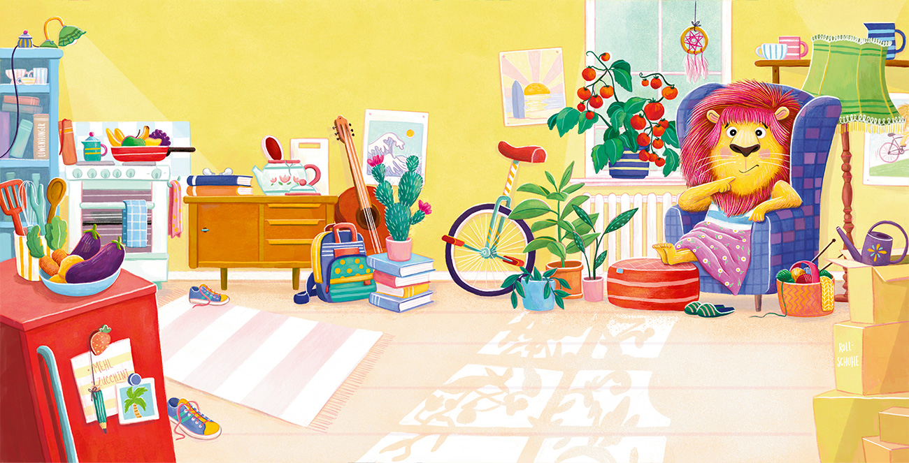 Illustrationen aus “Löwe sucht einen Freund – oder: Ich hab dich zum Fressen gern”. 2025 erschienen bei Baumhaus. Text: Lucy Astner.